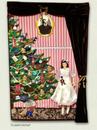 Thema dieser Arbeit ist die Ballettmusik „Der Nussknacker“ von Peter Tschaikowski. Die Szene zeigt ein bürgerliches Weihnachtszimmer des 19. Jahrhunderts. Im Mittelpunkt die Hauptfigur Clara als Balletttänzerin mit teilweise beweglichen Armen und Beinen. Im Arm hält sie den kaputten Nussknacker, ein Geschenk ihres Onkels. In der Nacht träumt sie von einer Schlacht der vom Nussknacker angeführten Spielzeugsoldaten gegen das Heer des Mäusekönigs. Mit ihrer Hilfe siegt der Nussknacker, der sich danach in einen Prinzen verwandelt und mit ihr in das Reich der Süßigkeiten reist. Dabei geht es über den Tannenwald zum Schloss Zuckerburg, wo die dort residierende Zuckerfee zu Ehren ihrer Gäste ein Fest veranstaltet…