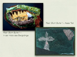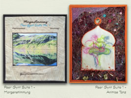 Zu Griegs bekannten Stücken aus der ersten Peer Gynt Suite habe ich vier Themen ausgewählt und textil umgesetzt.