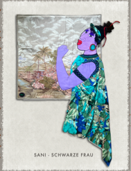 So habe ich also diese südafrikanische Stickerei - die Stickerin heißt Sani Mudau - direkt in mein Bild eingearbeitet, ihr eine Frisur, eine Figur und vor allem eine „Haltung“ gegeben. Der Hintergrund ist mit der Nähmaschine freihand gestickt.